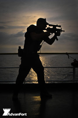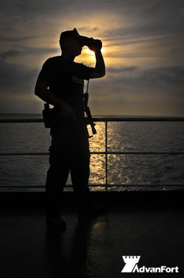 Putting into effect its state-of-the-art multi-layered protection, AdvanFort made sure that its own guards were at the ready for visual ID of skiffs or mother ships in order to protect its clients and other shipping in the area. At the same time, the U.S. Office of Naval Intelligence issued a special advisory warning that "mariners should remain vigilant for the potential presence of a pirate attack group in the Gulf of Oman. The area will remain at high risk for at least the next 48-72 hours."Although the monsoon season is approaching, AdvanFort's most recent Piracy Threat Analysis Report notes that sea states are still currently conducive to pirate small boat operations.